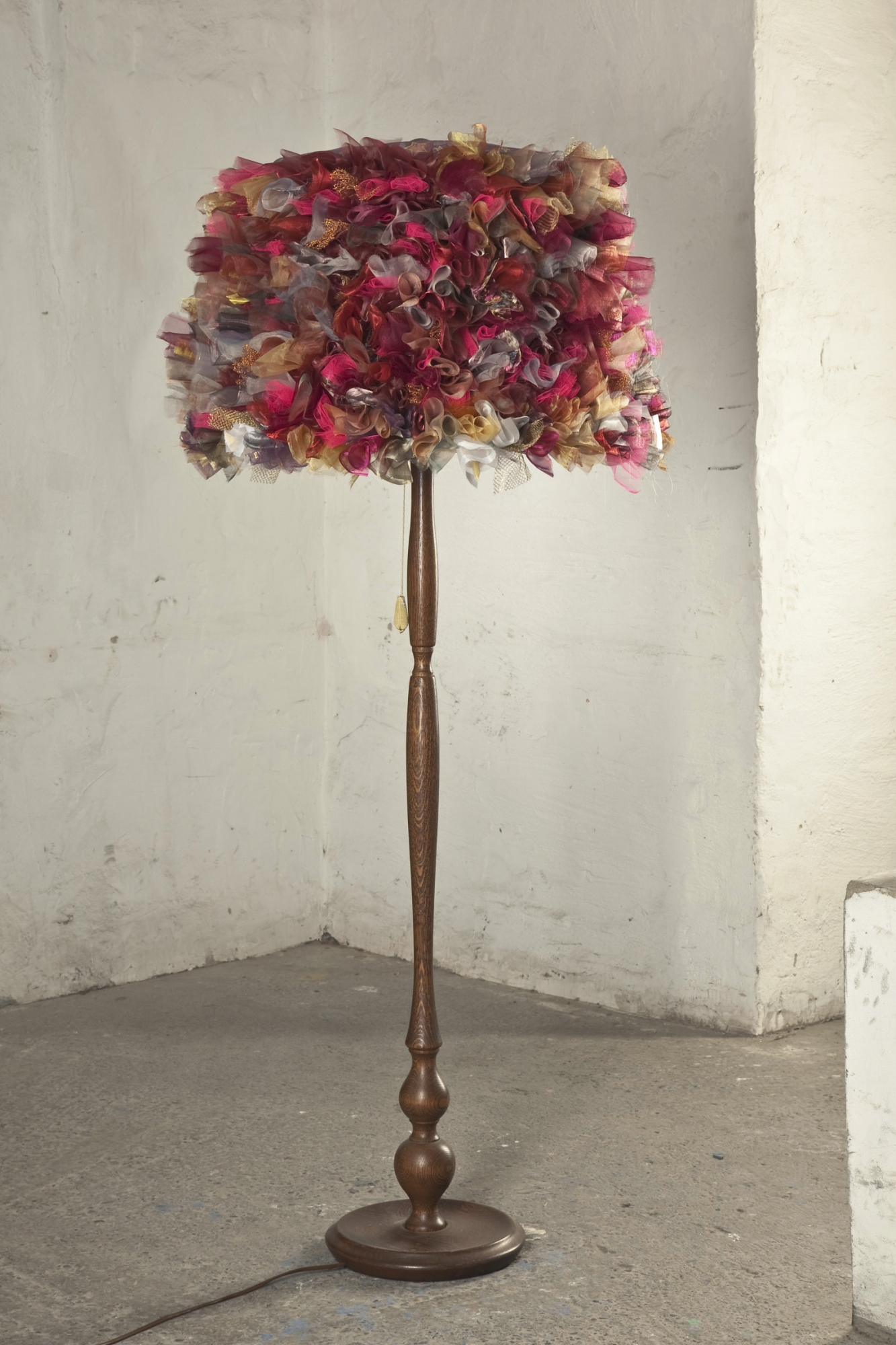 Material: kunstseidene Lampenschirmform, Organza, Holzständer
